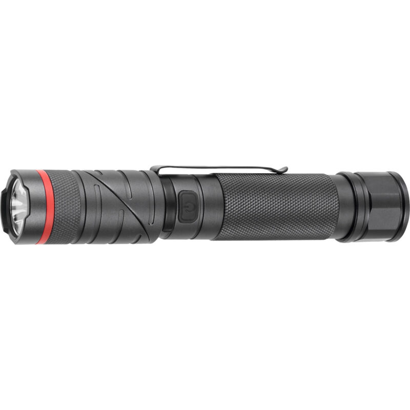 Lampada tascabile a LED ricaricabile in alluminio anodizzato con batteria, 3 livelli di LED, convertibile in luce UV, con testa orientabile a 90° e base magnetica. Tecnologia a LED di ultima generazione con straordinaria potenza luminosa. * Rivestimento in gomma del pulsante. Funzione: IP54: protezione contro gli spruzzi d'acqua da ogni direzione e contro l'accumulo di polvere all'interno (protezione contro la polvere), nonché protezione completa contro il contatto. Fornitura: Incluso cavo di carica USB-C. Dati tecnici Tipo di prodotto Lampada tascabile Capacità batteria, Ah 2,6 Lunghezza d'onda dei raggi UV, nm 395 ⌀ Testa, mm 29 Corrente di illuminazione, lm 450 Durata, h 2 - 8 Grado di protezione IP IP 54 Corrente di illuminazione Livello 3, lm 120 Corrente di illuminazione Livello 2, lm 300 Numero di batterie contenute 1 Lunghezza complessiva, mm 158 Tipo di batteria Ioni di litio Alimentazione Alimentazione a batteria