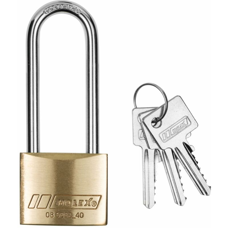 Apertura con chiave unica, i lucchetti ordinati hanno la stessa serratura. Apertura con chiave diversa, ogni lucchetto ha la propria serratura. Lucchetto con meccanismo di chiusura di precisione inox, arco temprato, cromato e a doppia chiusura. Corpo in ottone massiccio a grande arco. Funzione: A chiusura differenziata significa che la chiave può aprire e chiudere solo una serratura o un cilindro alla volta. Fornitura: Lucchetto con 3 chiavi. Dati tecnici Tipo di prodotto Lucchetto ⌀ Alloggiamento, mm 40 Materiale dell'alloggiamento Ottone ⌀ Staffa, mm 6 Numero chiavi 3 Numero di serrature 1 Chiusura a chiusura differenziata