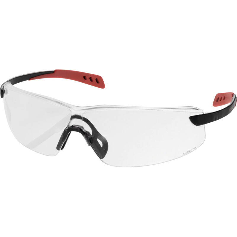 Occhiali di protezione monolente dal peso ridotto e con comode stanghette in bicomponente Flex senza cerniera. Con morbido nasello per un comfort elevato. Le lenti arcuate assicurano una protezione laterale particolarmente buona e una visione di 180° priva di deformazioni. 100% senza metalli. Il rivestimento degli occhiali di protezione è insensibile ai graffi di lieve entità, ma non offre una completa protezione anti-graffio come previsto dalla norma EN 166 (codice K). Norma: EN 166;