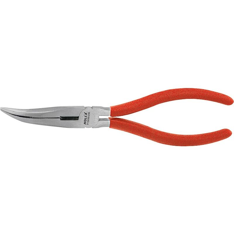 Becchi particolarmente lunghi, mezzotondi a punta. Taglienti temprati a induzione (circa 61 HRC), adatti per filo duro e dolce. Becchi zigrinati all'interno. Pinza in esecuzione lucida, manici rivestiti in plastica. Norma: DIN ISO 5745 Materiale: Acciaio al cromo-vanadio, forgiato e temprato in bagno d'olio. Dati tecnici Forma delle ganasce becchi mezzotondi a punta, piegati (40° - 45°) Caratteristica ganasce Taglienti temprati a induzione (ca. 60 HRC) Norma DIN ISO 5745 Esecuzione ganasce zigrinatura all'interno Superficie lucido Materiale Acciaio al cromo-vanadio, forgiato in stampo e temprato in bagno d'olio Impugnatura rivestiti in plastica Tipo di prodotto Pinza multifunzione Lunghezza complessiva, mm 200 Lunghezza griffe, mm 73