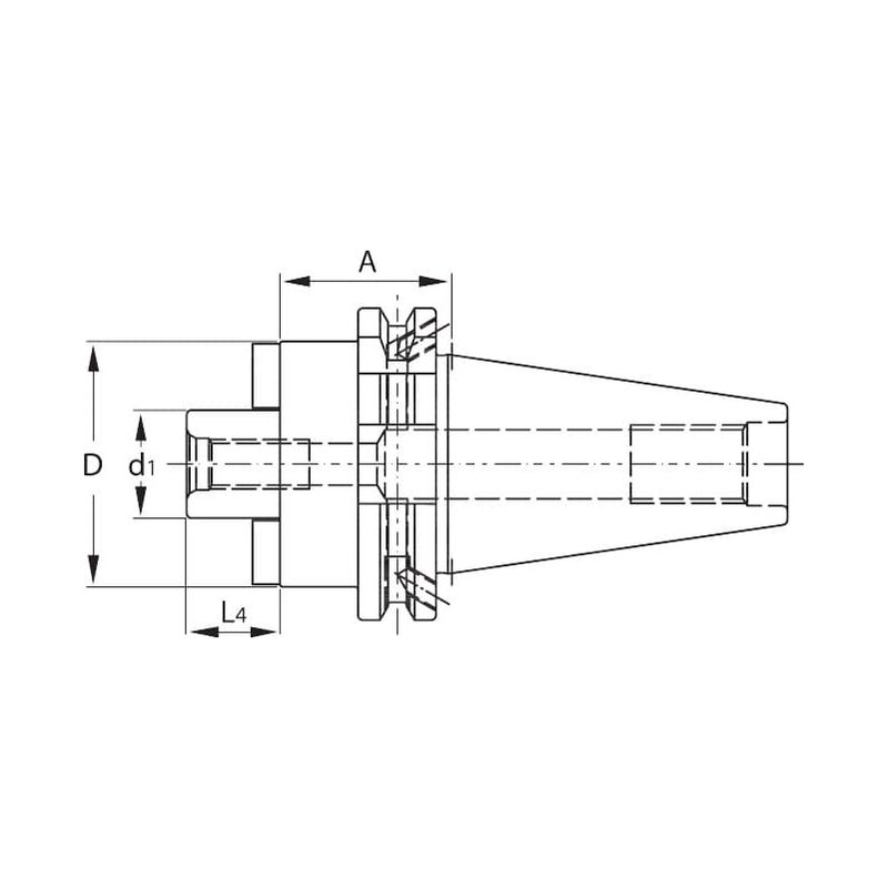Da attacco ⌀ 40 con 4 fori filettati per frese a inserti a norma DIN 2079. * Attacco conico, attacco fresa di supporto e superfici di aderenza dell'anello rettificate. * Attacco fresa compatto. * Maggiore superficie di aderenza. * Con foro Balluffchip / RFID. Tutti i codoli sabbiati con sfere di vetro fine. Fornitura: Inclusa vite di bloccaggio frese. Accessori speciali: Codoli (AB) n. art. 308600 − 308806, chiave di serraggio AB n. art. 308820 - 308835, chiave speciale n. art. 309840. Vite di serraggio per fresa n. art. 309860;