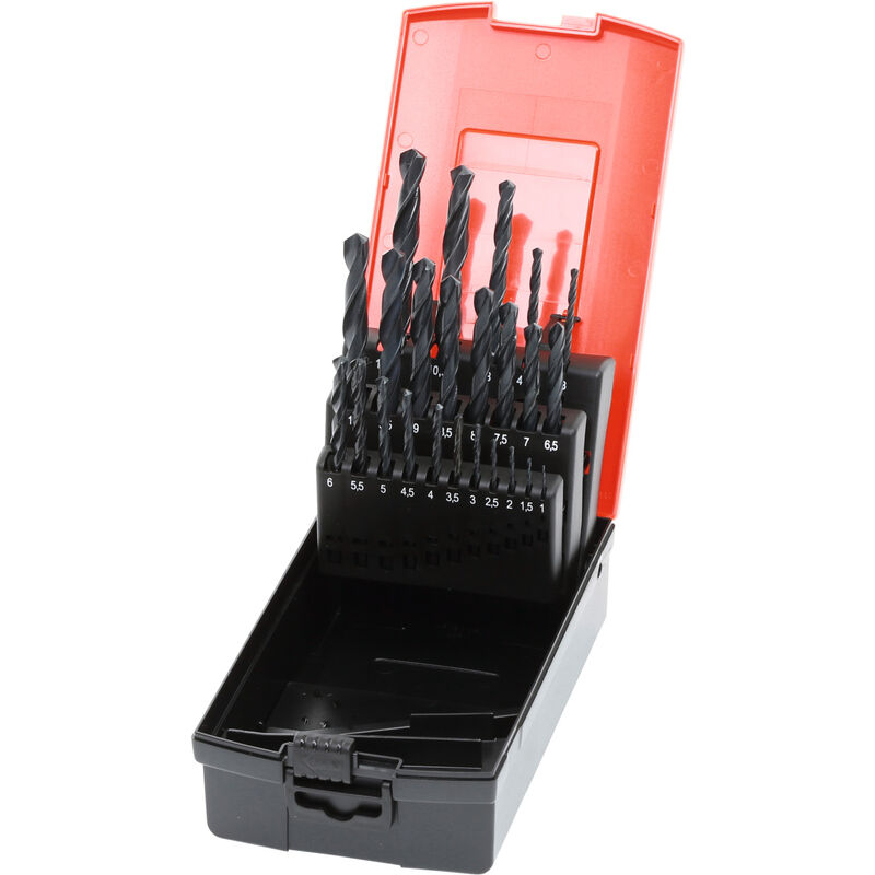 Composto da punte elicoidali a norma DIN 338. Esecuzione rullata, angolo dell'elica, spessore del nocciolo e conicità normali. Nessuna interruzione strutturale, quindi più elastiche e adatte a lavori di foratura robusta (per es. con trapani manuali). Esecuzione economica. Dati tecnici Olio idoneo Acciaio < 750 N/mm² m/min idoneo a secco limitatamente adatto Alluminio (a truciolo corto) m/min limitatamente adatto GG(G) m/min limitatamente adatto Acciaio < 500 N/mm² m/min idoneo a umido max. idoneo Acciaio < 900 N/mm² m/min idoneo Modello N Angolo di affilatura Grad 118 Tolleranza ⌀ nominale h8 Rivestimento non rivestito In cassetta sì Materiale da taglio HSS Colore collarino senza Passaggio interno per LR no Tipo di prodotto Punta elicoidale ⌀ Preforo, mm 3,3;
