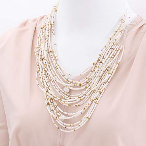 Holibanna Collana con colletto grosso a catena lunga multistrato Collana con colletto di perline Collana con perline bohémien per donna (bianca)