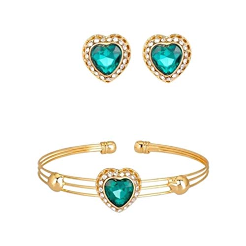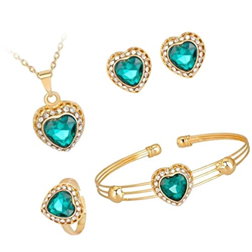 Holibanna Set di Gioielli a Forma di Cuore Collana di Strass Orecchini a Bracciale Orecchini Set di Gioielli Fai da Te Accessori per Signora Donna Festa Della Mamma (Verde)