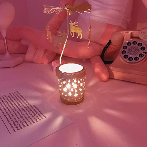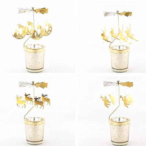Holibanna portacandele Rotante carosello Natalizio Spinning Cervo Tea Light Holder Decorazione della tavola (Oro) (Renna)