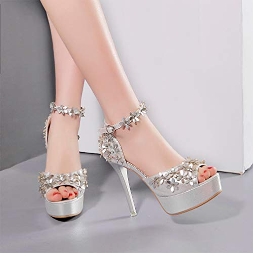 Holibanna Sandali a Spillo da Donna Scarpe Argento Glitter Fiore Lucido 12Cm Tacco Alto Punta Aperta Sandali con Plateau Estivi Piattaforma Tacco per Banchetto All'aperto 7. 5