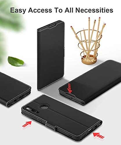 Holidi Cover per Huawei P30 Lite, Cover Huawei Huawei P30 Lite Libro, Custodia Huawei P30 Lite con [Supporto] [Slot per Schede] [Chiusura Magnetica] Portafoglio di PU Pelle, Flip Phone Case. Nero