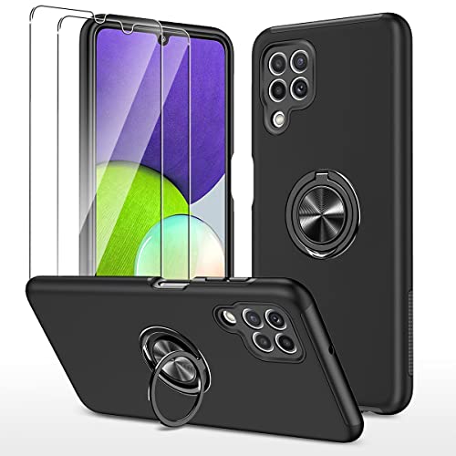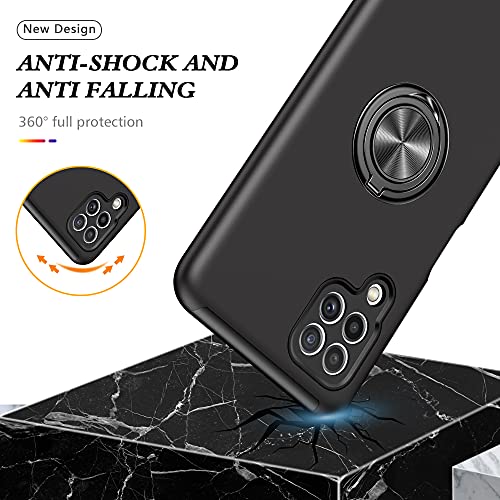 Holilo Cover +【2 Pezzi】 Vetro Temperato Pellicola per Samsung Galaxy A22 4G, 【TPU + PC】Metallo Rotante a 360° Supporto Anti graffio Anti impronte digitali Minimalista Custodia - Nero