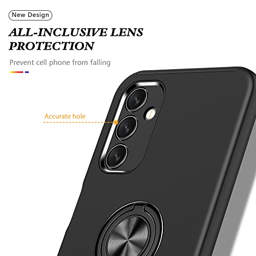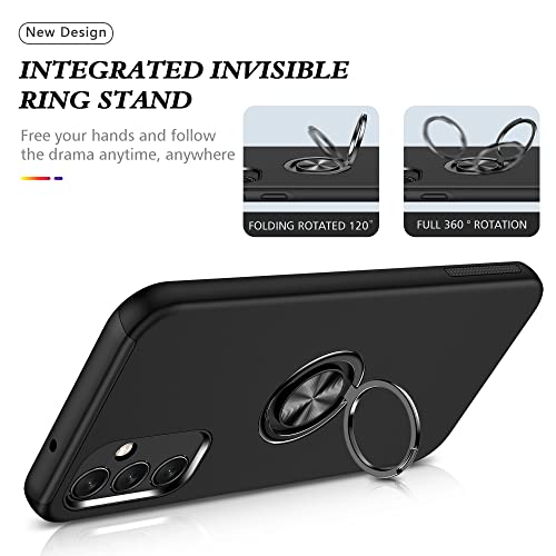 Holilo Cover +【2 Pezzi】 Vetro Temperato Pellicola per Samsung Galaxy A14 5G/A14 4G, 【PC + TPU】 Metallo Rotante a 360° Supporto Anti graffio Anti impronte digitali Minimalista Custodia - Nero
