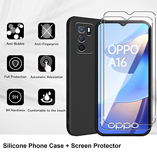Holilo Silicone Cover +2 Pezzi Vetro Temperato Pellicola per OPPO A54s / OPPO A16 / A16S, Anti-graffio Antiurto Tocco Morbido Protezione Custodia Protettiva Case Durezza 9H Pellicola Protettiva - Nero