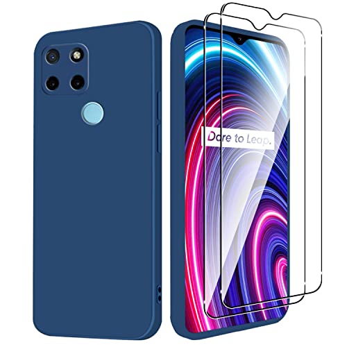 Holilo Silicone Cover +2 Pezzi Vetro Temperato Pellicola per Realme C25Y / C21Y, Anti-graffio Antiurto Tocco Morbido come Seta Protezione Custodia Protettiva Case Durezza 9H Pellicola Protettiva- Blu