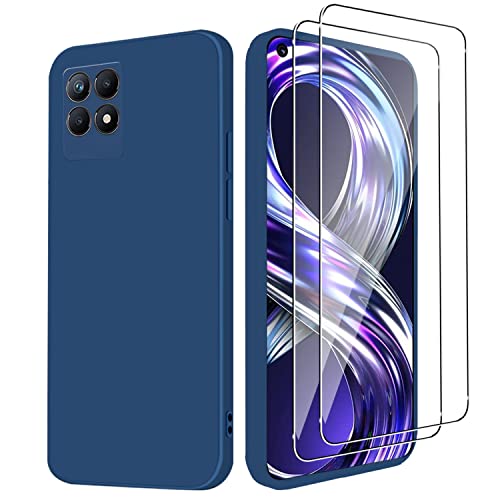 Holilo Silicone Cover +2 Pezzi Vetro Temperato Pellicola per Realme 8i / Realme Narzo 50 4G, Anti-graffio Antiurto Tocco Morbido come Seta Protezione Custodia Case Durezza 9H Pellicola Protettiva- Blu
