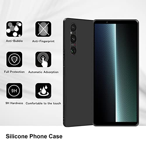 Holilo Silicone Cover per Sony Xperia 1 V 5G, Anti-graffio Antiurto Tocco Morbido come Seta Protezione Completa Custodia Full Body Protettiva Case - Nero