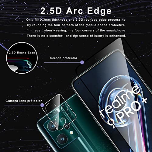 【Vetro Temperato Pellicola+ Pellicola Fotocamera】 Combinazione perfetta-2 pellicole protettive per schermo in vetro temperato Realme 9 PRO+ /Realme 9 PRO Plus 5G, utilizzando una tecnologia di taglio laser precisa per coprire lo schermo il più possibile.Fornisci la migliore protezione per lo schermo del tuo telefono.