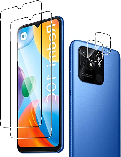 Holilo Vetro Temperato Pellicola per Xiaomi Redmi 10C【2 Pezzi】 Pellicola Protettiva e【2 Pezzi】 Pellicola Fotocamera, Pellicola Durezza 9H Protezione Schermo HD Anti-graffio Anti-Impronta