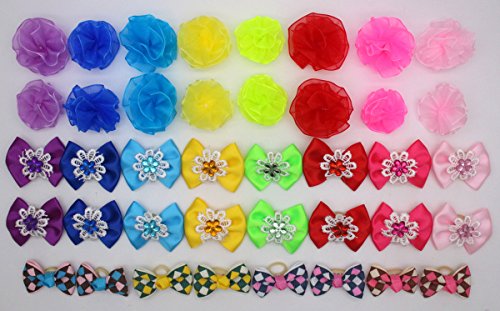Hollihi - Set di 40 fiocchi per capelli per cani e cani, con elastici in gomma, per cuccioli e gatti, per toelettatura, con fiocco, set di 40 paia di fiocchi e fiori