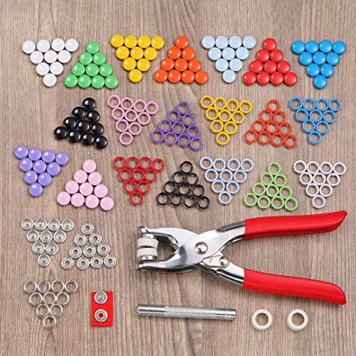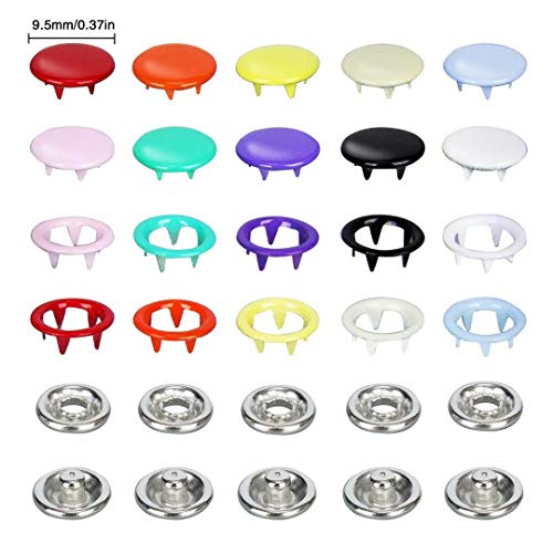 Questo kit contiene 1 pinza + 200 anelli per matite colorate da 9,5 mm + 2 gommini di ricambio + 1 strumento per punzonatura. Perfetto per la maggior parte dei tessuti da cucito più sottili. Non utilizzare su tessuti spessi o spessi. La lunghezza dei denti e degli artigli della nostra chiusura è di 3 mm. Molto più solido e solido, più ampia applicabilità.