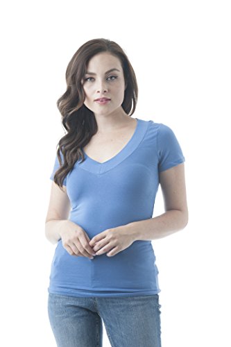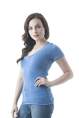 Hollywood Star Fashion - Camicia da donna a maniche corte con scollo a V Blu denim chiaro. M