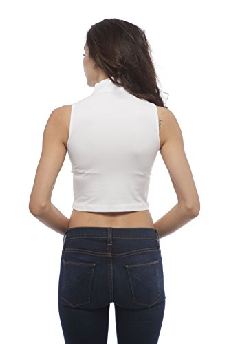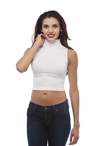 Hollywood Star Fashion Women's Sleeveless High Neck Plain Solid Crop Top (OneSize, White)