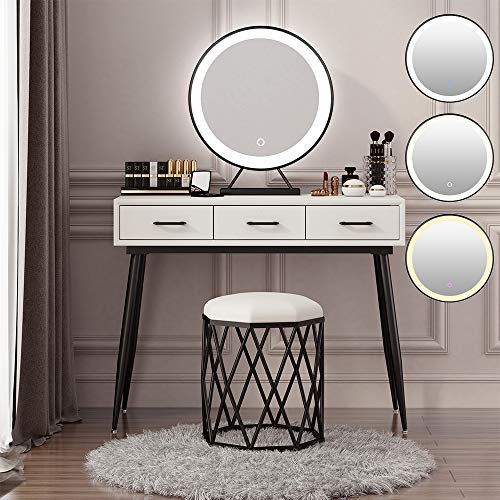 Hollywood Specchio cosmetico illuminato con LED, controllo touch, Specchio per il trucco regolabile rotondo caldo e freddo, Specchio da Trucco da Tavolo con Luce A LED 50 * 50 cm