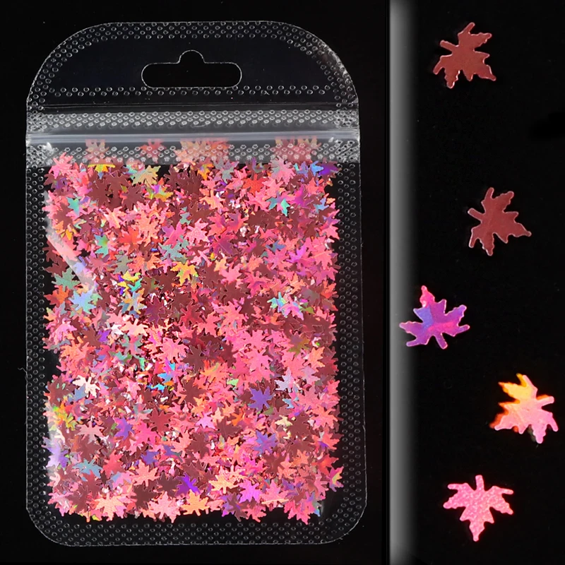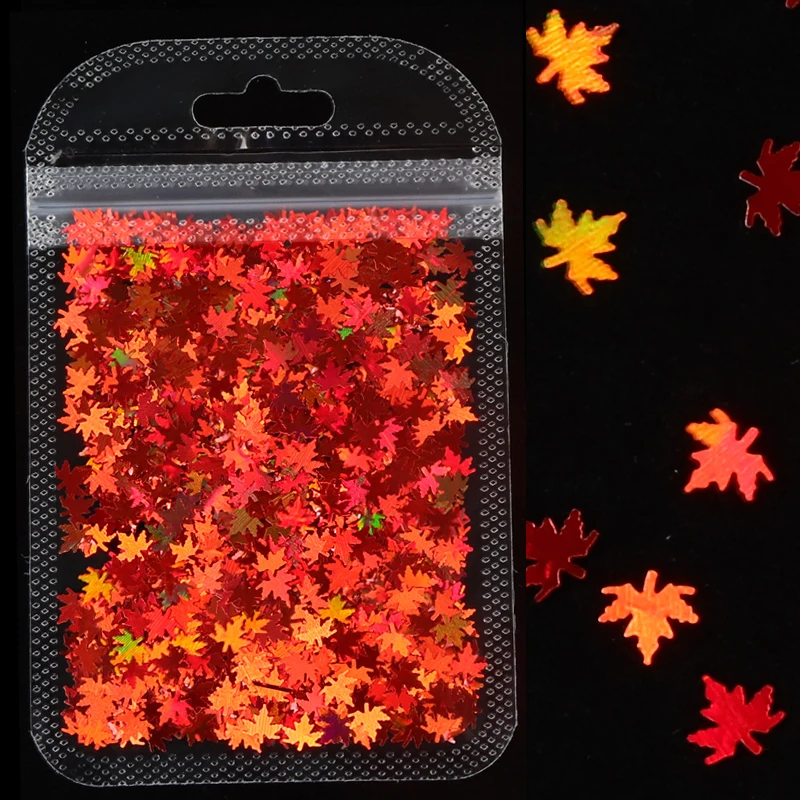 1Bag Holographic Maple Leaves Nail Sequins Glitter Flakes Paillette Chameleon Stickers for Nail Art Decorations