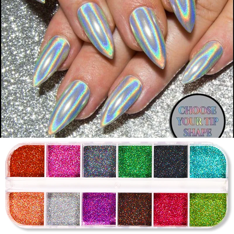 1 Box Holographics Nail Powder Laser Silver Nail Glitters Gradient Sparkly Dust Chrome Pigment DIY Nail Art Decorations