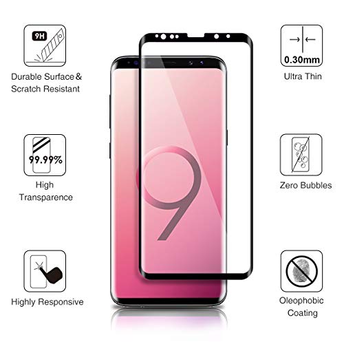 HOLOO S9 Plus Vetro Temperato (2 Pack)(con einbaupositionierer), 3D Copertura Completa/Durezza 9H/Anti Graffi/Impermeabile Pellicola in Vetro temperato per Samsung Galaxy S9 Plus