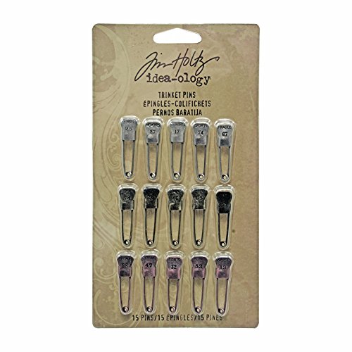 Tim Holtz Idea-Ology 1.25" Trinket Pins-15/Pkg - 5ea Antique Nickel/Brass/Copper