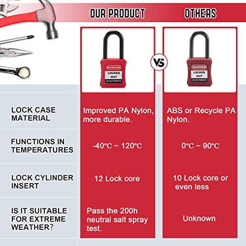 HOLULO Lucchetto di Sicurezza, Lucchetti per la Sicurezza, 10 Lucchetto Tagout con 20 chiave, 1-1/2" Insulated Shackle, rosso