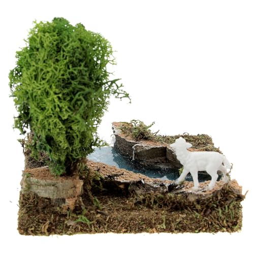 Holyart Curva di fiume con albero e pecora: ambiente presepe
