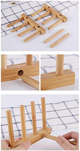 Facile da installare: 8 picchetti verticali in bambù (4 su entrambi i lati) creano 3 slot per piatti o coperchi per pentole, i due lunghi rack e due pioli, ogni scaffale ha due fori. Per assicurarsi che colleghi ogni pezzo più stretto, è meno tolleranza design. Quando si installa, spingere i picchetti in rack laterali con un po 'di grande pressione, quindi l'intero rack sarà stretto. Scolapiatti in bambù in pezzi decorativi mostrati nelle foto del prodotto non sono inclusi.