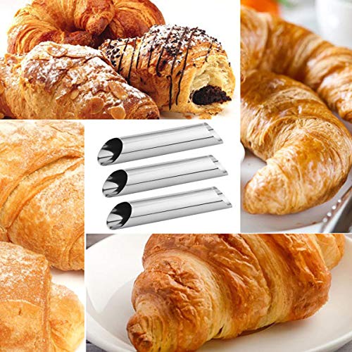 Materiale di Sicurezza - Questo stampo per croissant è realizzato in acciaio inossidabile resistente di alta qualità, costruzione resistente, facile da usare e facile da pulire. Ll materiale di alta qualità ti assicura grande gusto e ottimo umore. Questo cannoli stampi per pane ha una lunghezza totale di 12,5 cm e un diametro di 2,7 cm. Questi strumenti per la fabbricazione di stampi saranno le tue fantastiche mani in cucina.