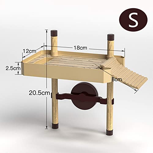 Holzsammlung Piattaforma Galleggiante Rettili, Anfibi Piattaforma Rana Tartaruga Piattaforma Basking Basculante con Scala Rampa per Piccoli Animali Domestici Aquarium Terrarium Decoration Ornament, S