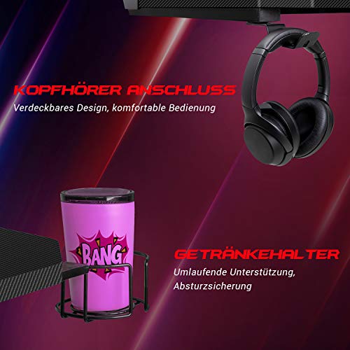 Homall Scrivania Per Gaming, Da Gioco, Scrivania Per Computer, Ergonomico, In PC, 110 cm, Con Controller, Supporto Per Bicchieri, Gancio Per Cuffi (Nero)