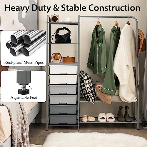 HOMASIS Appendiabiti da terra asino, appendiabiti con 6 cassetti rimovibili, appendiabiti multifunzionale con ripiani per scarpe, realizzato in metallo con gancio laterale e gambe regolabili,