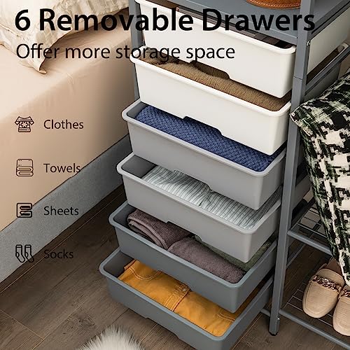 ~Facile da usare~ I 6 cassetti estraibili sono realizzati in PP di alta qualità per facilitare la classificazione dei vestiti ed evitare la polvere. Grazie alle guide metalliche e alle maniglie ritagliate, potrete aprire e chiudere i cassetti con facilità e delicatezza.