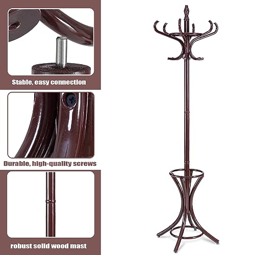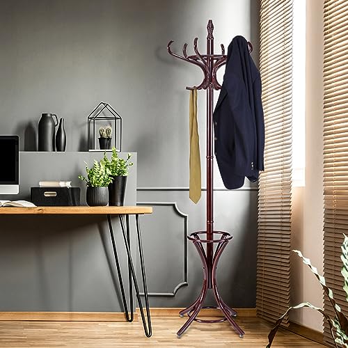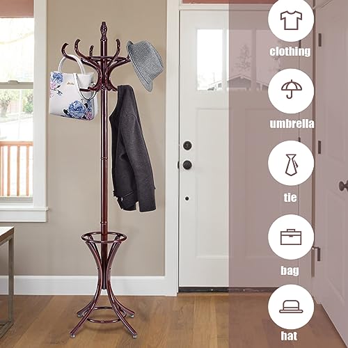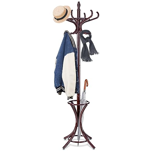HOMASIS Attaccapanni da Terra, Appendi Abiti, Appendiabiti in Legno Massiccio con 12 Ganci, Mobile per Abiti, Cappelli, Stand Appendiabiti per Corridoio, Ingresso, Ufficio, 51 x 184 cm (Marrone)