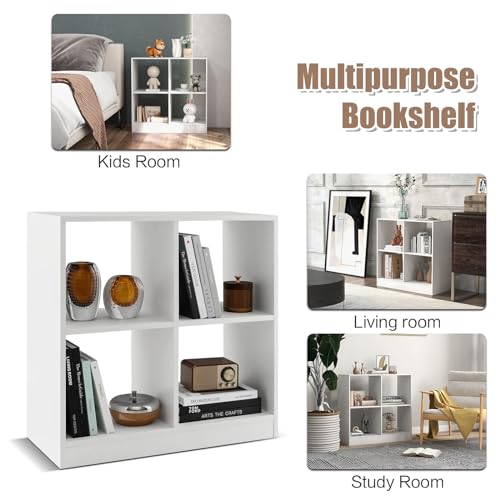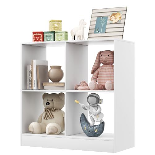 HOMASIS Libreria Bassa a 4 Cubi, Libreria Bianca in Legno, Libreria Scaffale Moderna e Salvapazio, Portaoggetti Aperto per Salotto, Camera da Letto, Ufficio, Studio, 73 x 33 x 75 cm
