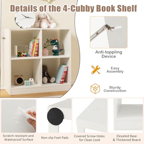 ~Sicurezza e stabilità~ Questa libreria a 4 cubi è dotata di piedini antiscivolo e di un dispositivo antiribaltamento per garantire a voi e alla vostra famiglia la massima sicurezza durante l'utilizzo. Inoltre, il fondo di questa libreria è dotato di un battiscopa di 6 cm di spessore per migliorare la stabilità della libreria.