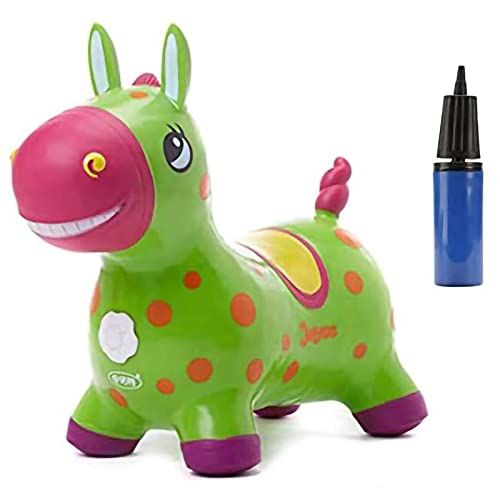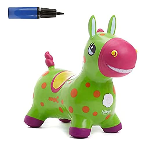 HOMCENT Cavallo Gonfiabile,Animale Cavalcabile Cavallo, Giochi Gonfiabili per Bambini, BPA-Free, Pompa Inclusa (Verde)
