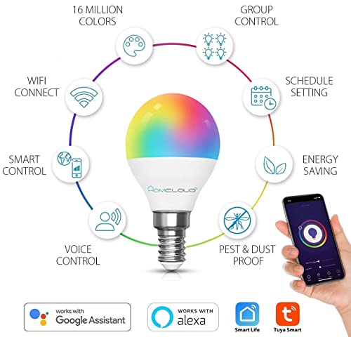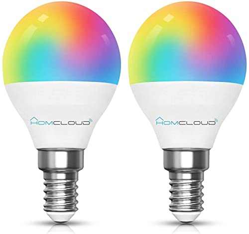 Homcloud Confezione da 2 di Lampadina Smart Wi-Fi Intelligente LED Multicolore + Bianco Caldo E14 G45 dimmerabile, controllo remoto con APP, Smart Life, Alexa o Google