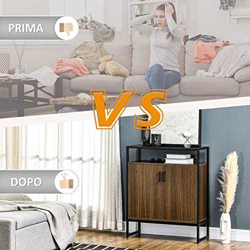 MULTIUSO: Sfrutta al meglio la casa con il nostro armadietto a due ante. Utilizzalo in soggiorno per creare una zona bar, sistemalo in sala da pranzo come credenza o mobile soggiorno, o sistemalo all'ingresso come tavolo consolle per gli oggetti da portare fuori con te.