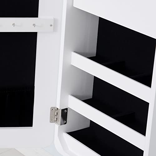 HOMCOM Armadio Portagioie Portagioielli con Specchio Regolabile e Illuminazione LED, Legno, Bianco, 30x146x36 cm