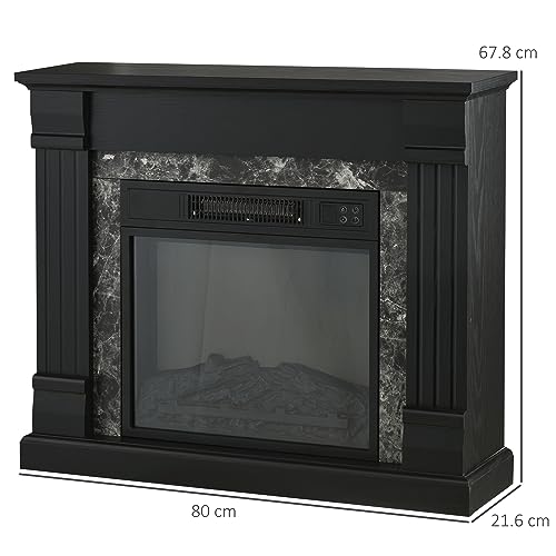 HOMCOM Camino Elettrico da Incasso a Terra con Timer, Fiamma Realistica e Temperatura Regolabile, Caminetto Elettrico in Metallo, ABS e Truciolato, 80x21.6x67.8 cm, Nero