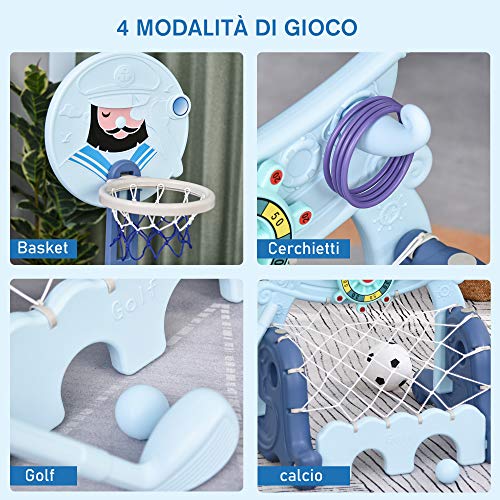 Homcom Set Canestro Basket, Golf Giocattolo, Porta da Calcio per Bambini 3-6 Anni con Altezza Regolabile 63-120cm