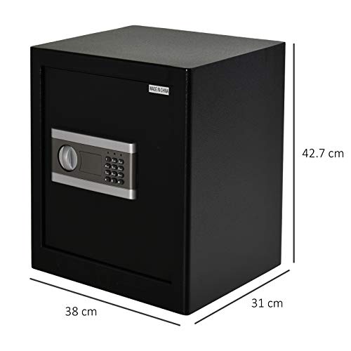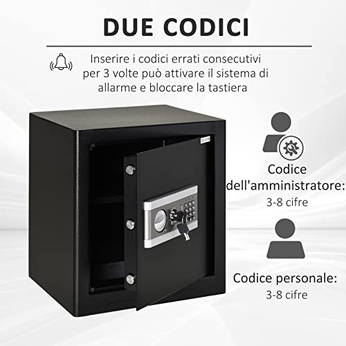 HOMCOM Cassaforte Elettronica in Acciaio Nero, con Chiave e 2 Codici PIN, Fissaggio a Muro o Pavimento, 38x31x42.7cm