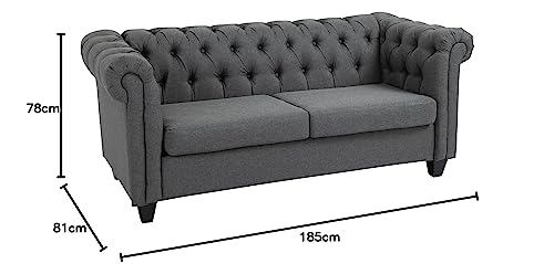 HOMCOM Divano Chesterfield, Divano 2 Posti in Tessuto Lino Grigio, Divano Classico e Imbottito per Casa e Ufficio 185x81x78cm
