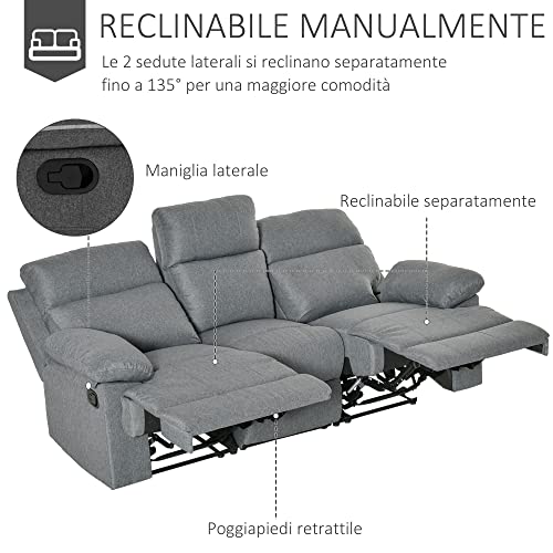 HOMCOM Divano 3 Posti in Microfibra con Schienale e Poggiapiedi Laterali Reclinabili, 198x86x97cm