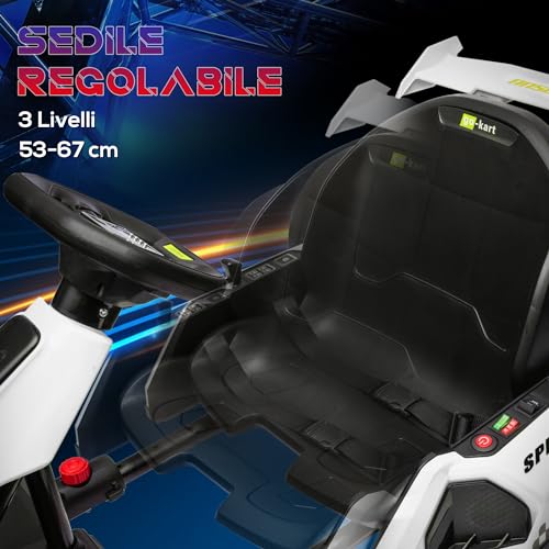 HOMCOM Go Kart Elettrico per Bambini 6-12 Anni 24V 12km/h con Seggiolino Regolabile, Drift Go-Kart con Clacson, Luci e Musica, Bianco