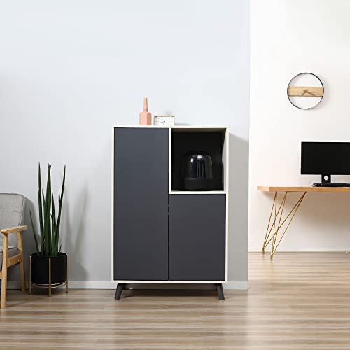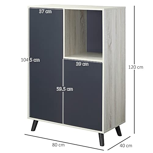 HOMCOM Libreria Moderna in Legno con 2 Ante e Vano Aperto, Mobile Multiuso per Soggiorno, Camera da Letto, Ufficio, Grigio Scuro